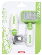 A complete kit to meticulously brush your rodent. Includes a fine comb and a soft brush to smooth small animal coats, together with a pneumatic brush. Safe tools suitable for small animals. Dual-density, ergonomic, non-slip handles.
