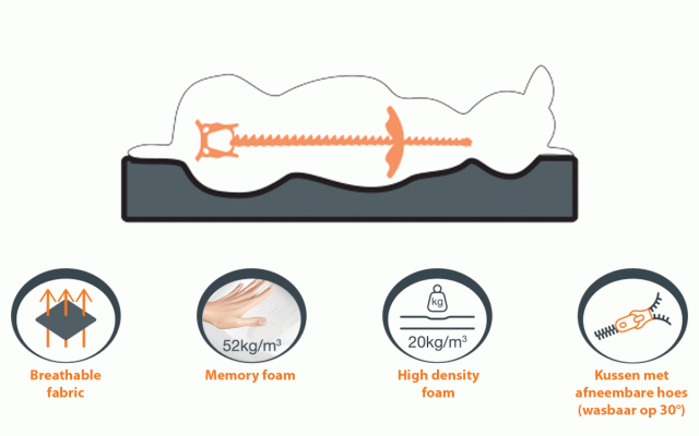 ➜ Advantages: by perfectly adapting to your animal’s morphology: MEMORY provides your pet with maximum comfort. MEMORY helps relieve joint problems.