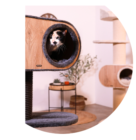 Available in 3 models and 2 colours, these houses have resting areas, play areas and scratching posts. Made in Europe from 100% FSC-certified wood. They are big and very stable. They're perfect for big cats!